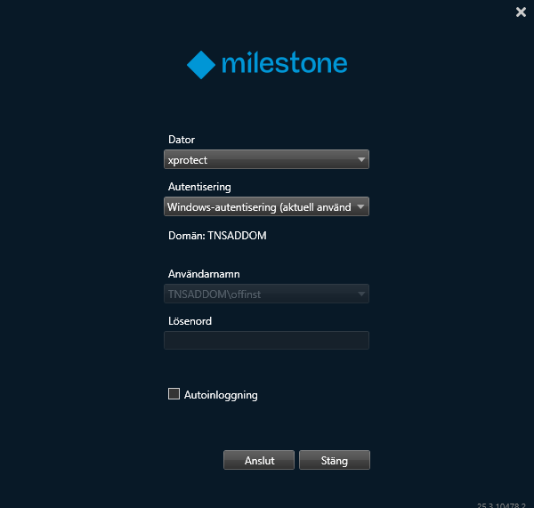 Efter uppdatering av XProtect behöver alla användare göra två nya engångsinställningar för att kunna se sina kameror. OBS OBS Vid inloggning kontrollera att det står xprotect i fältet dator