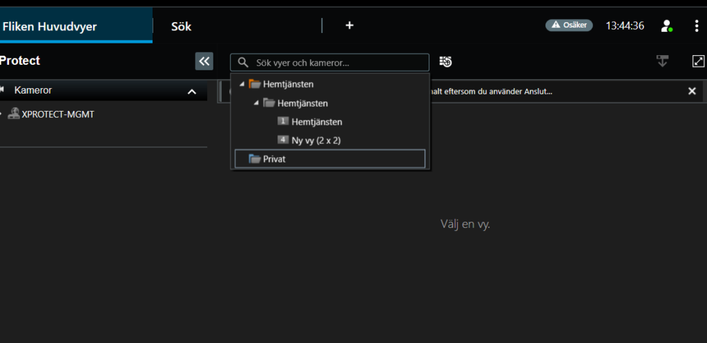 Klicka på Vyer. Välj Hemtjänsten / Hemtjänsten i listan. När detta är gjort får du tillgång till kamerorna igen och de visas som vanligt i den vänstra spalten.